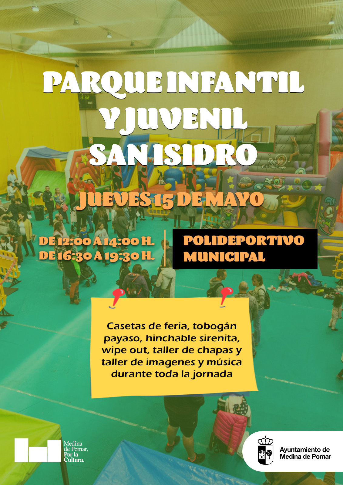 Casetas de feria, tobogán payaso, hinchable sirenita, wipe out, taller de chapas y taller de imagenes y música durante toda la jornada