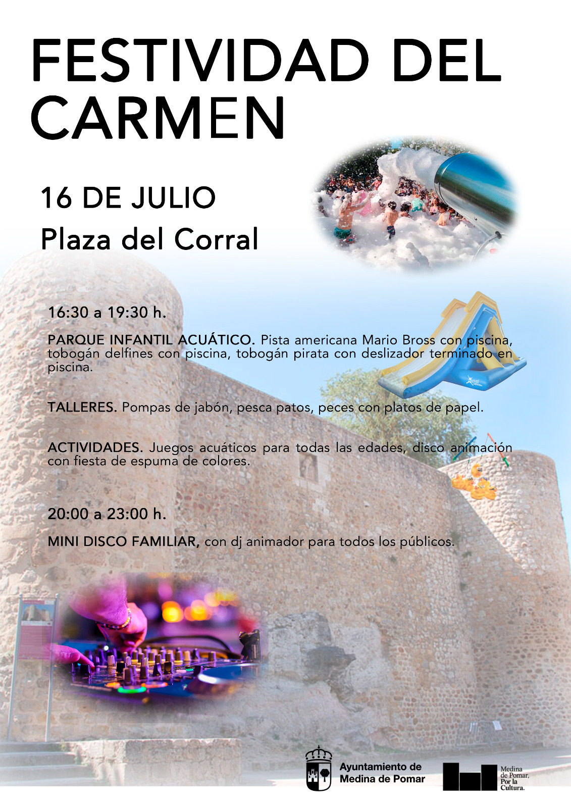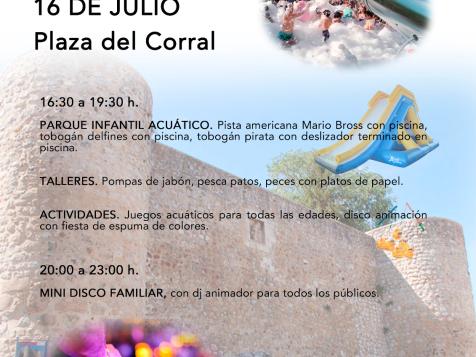 Parque infantil acuático, diversos talleres, actividades para todas las edades, mini disco familiar...