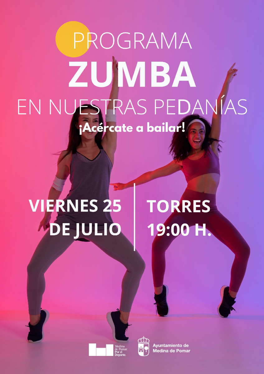 Torres- Medina de Pomar , Torres de Medina, 09500 Medina de Pomar, Burgos 19:00 / 20:00 Viernes, 25 Julio 2025 ZUMBA EN NUESTRAS PEDANÍAS ¡Acércate a bailar!